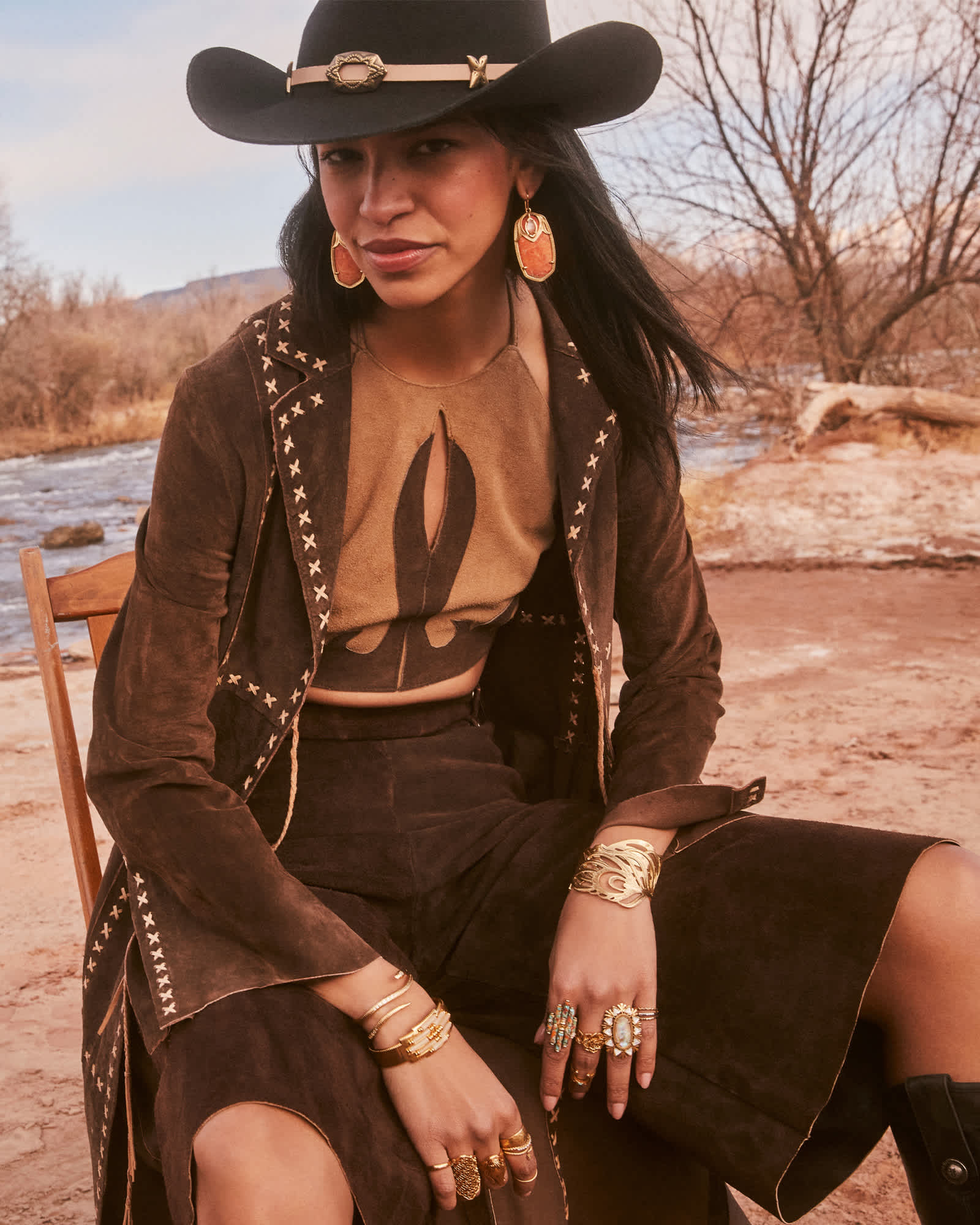 Ember Gold Triple Cuff Bracelet in Bronze Veined Turquoise Magnesite Red Oyster